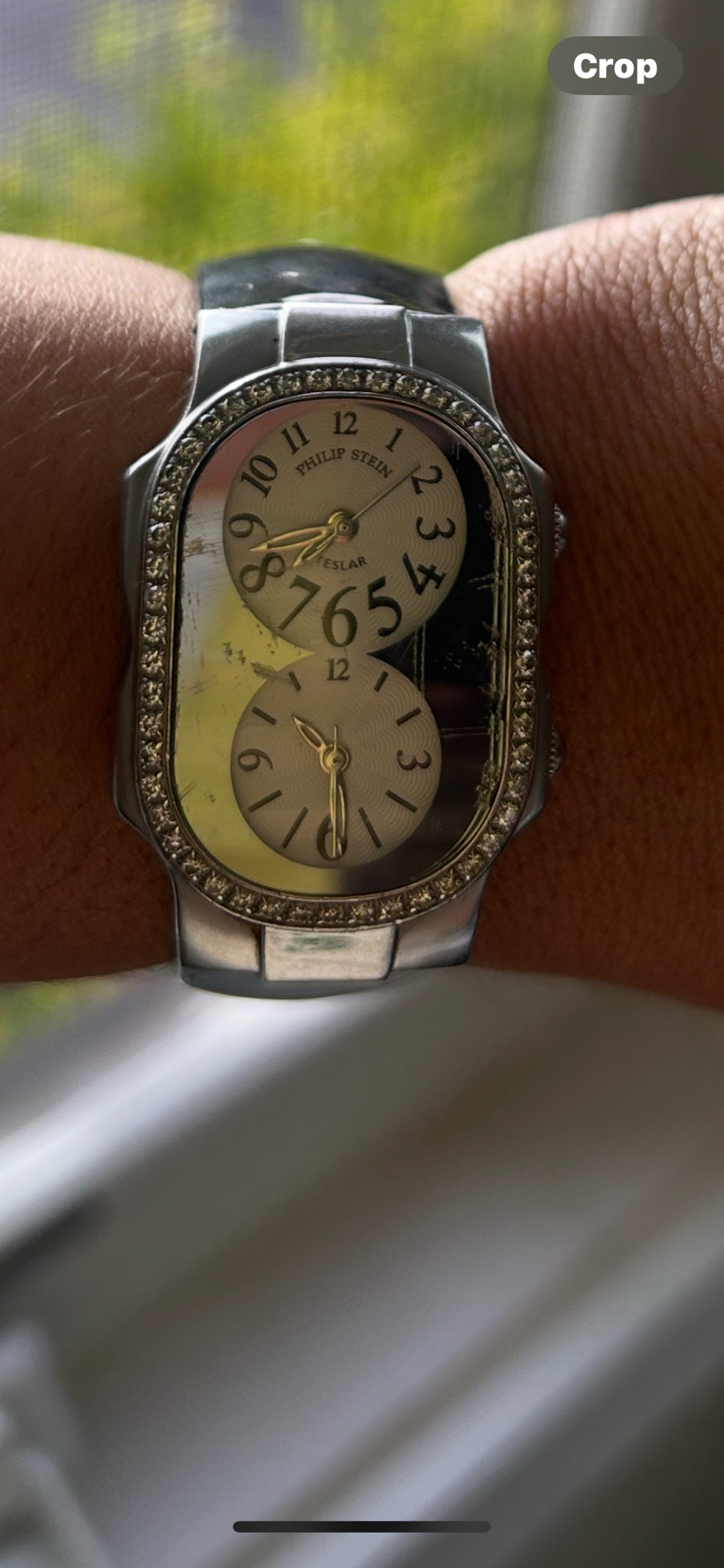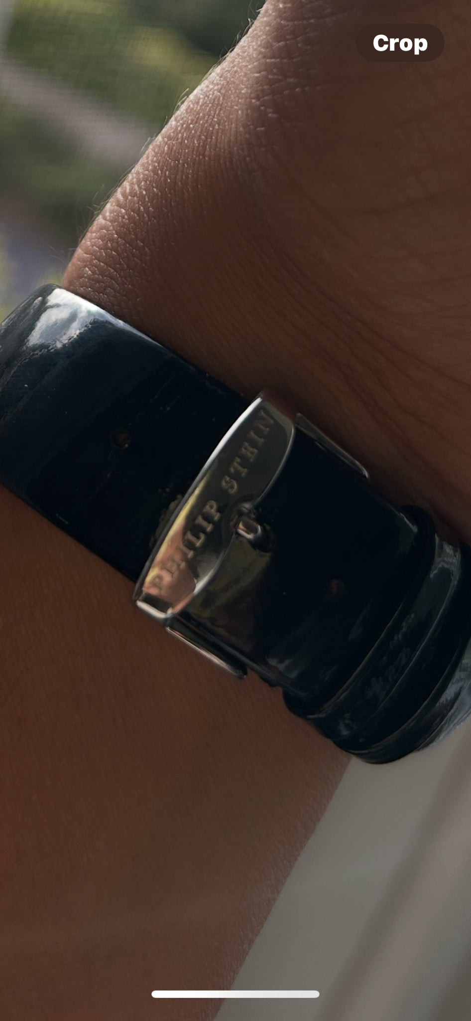 Philip Stein Black & silver patent W/Diamonds Watch, AS IS