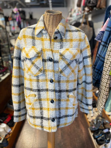 Isabel Etoile Marant Yellow & Beige Wool Plaid Wooden button Jacket, Size S/M