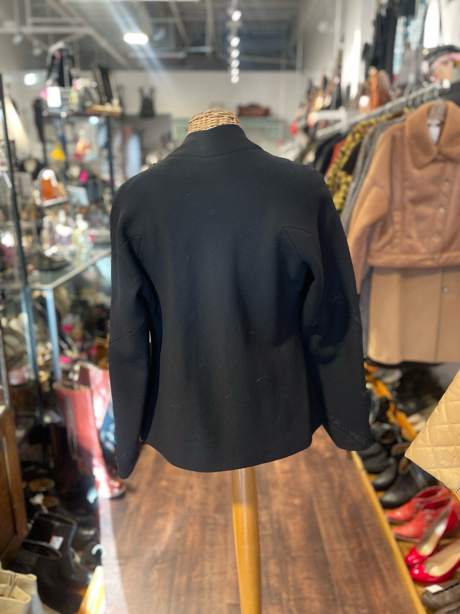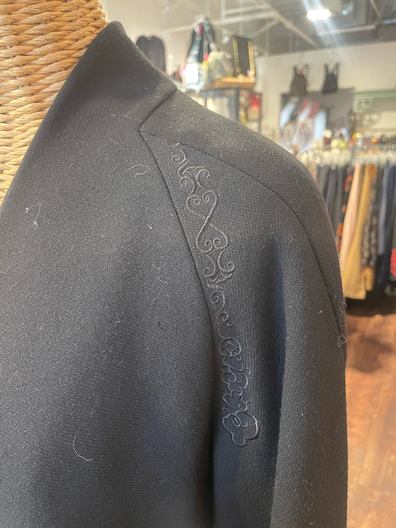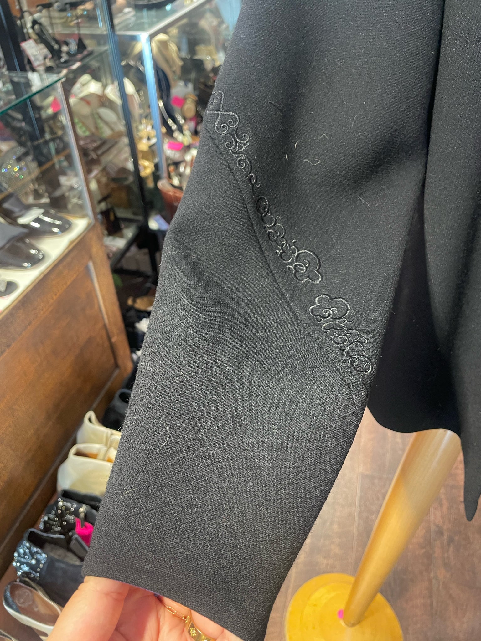 Shanghai Tang Black Blend embroidery blue lining open Blazer, Size M/L