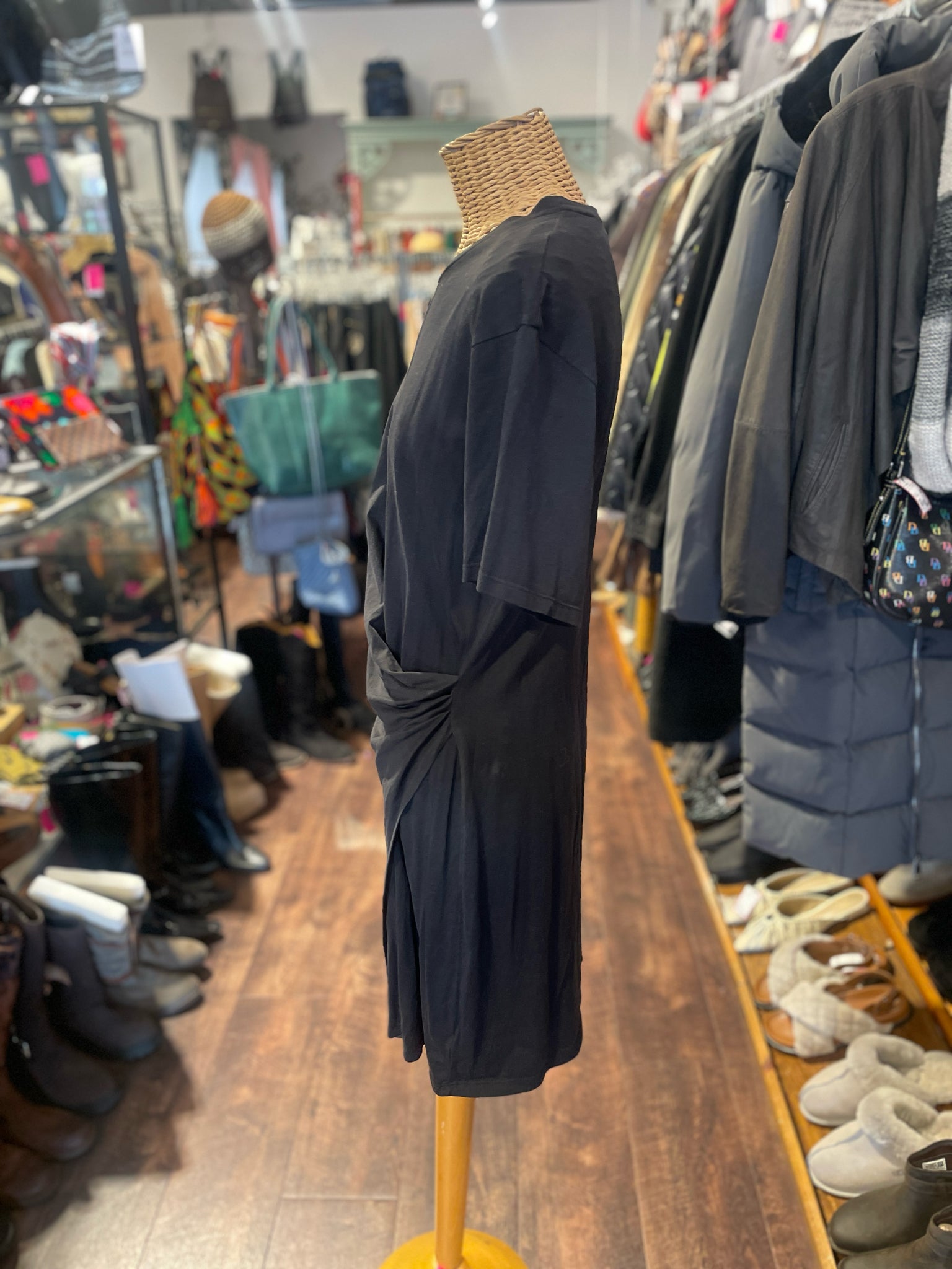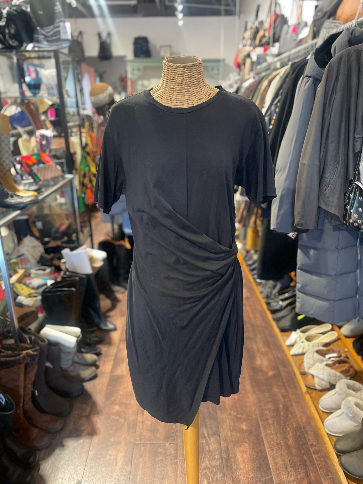 Theory Black Cotton Draped Dress, Size M