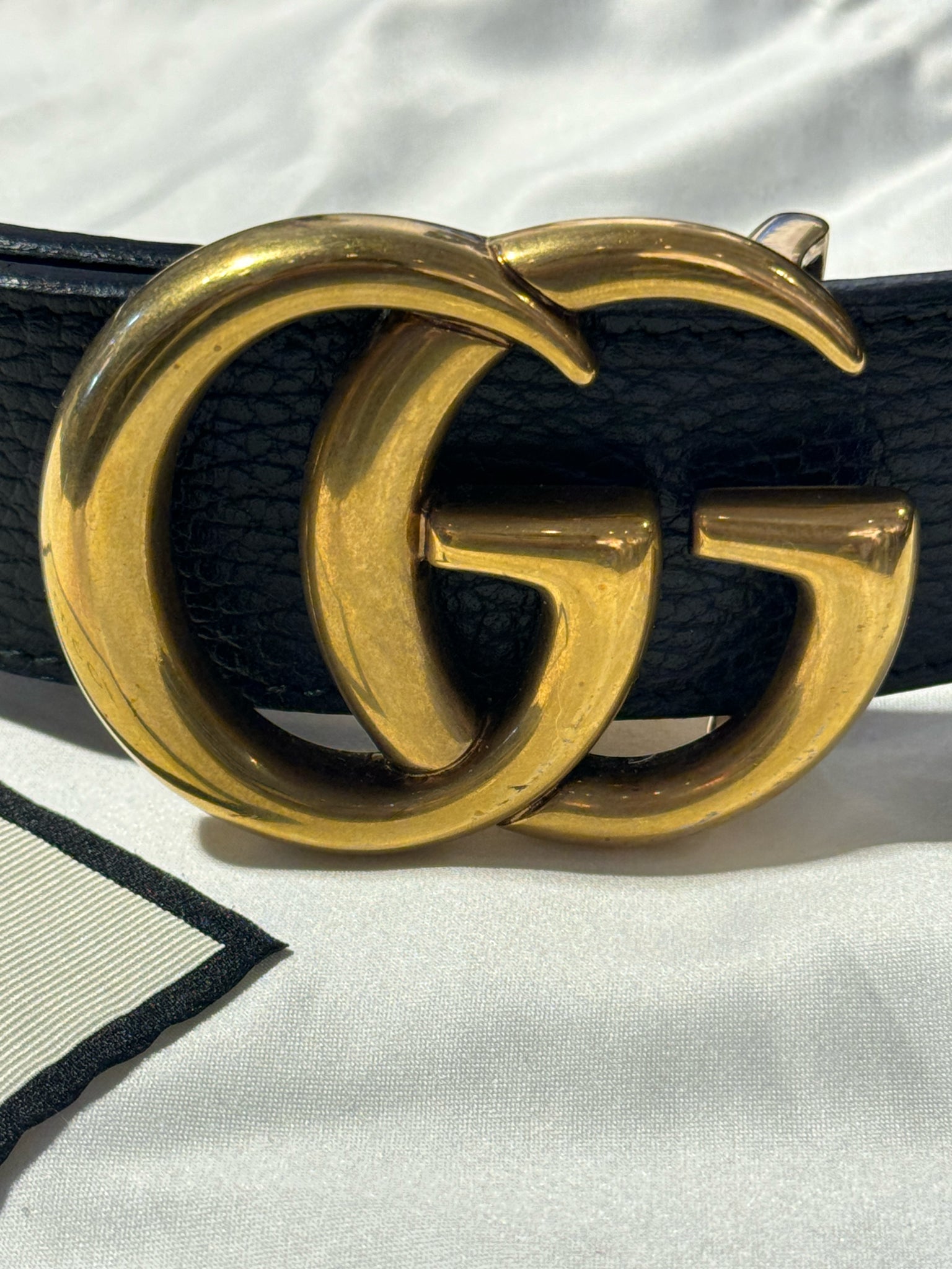 GUCCI Black + Brown gold hardware double G Reversible Belt,Size 38 w/ duster