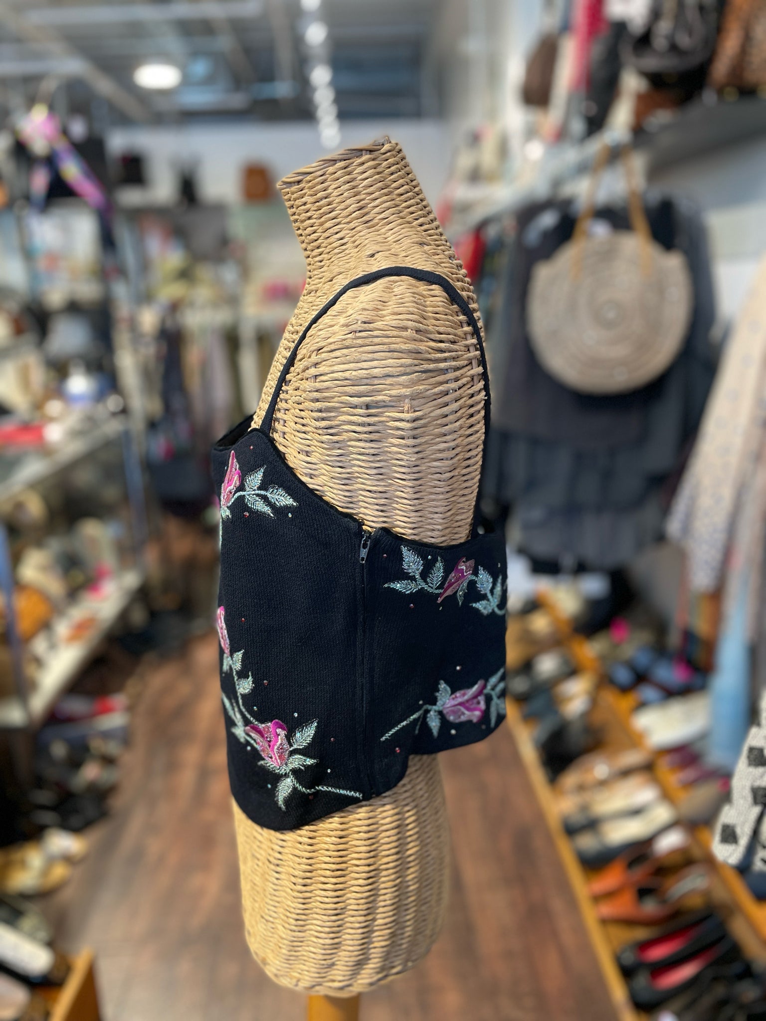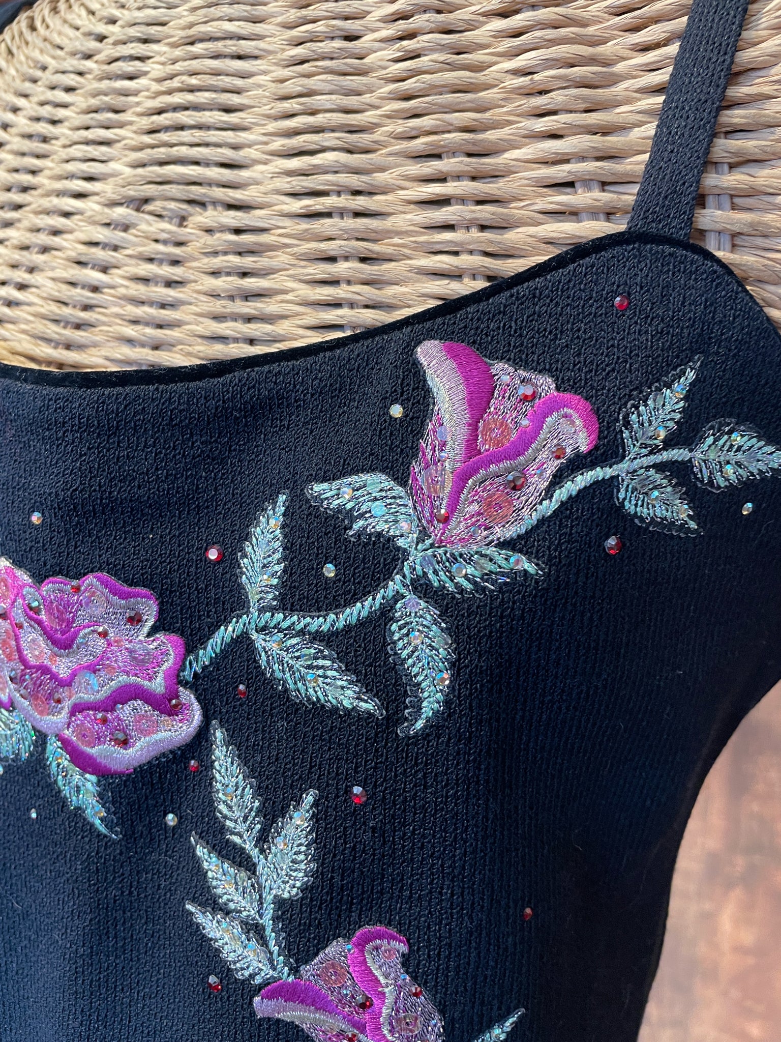 St. John Black, Multi Knit beaded floral Knit Top, Size S