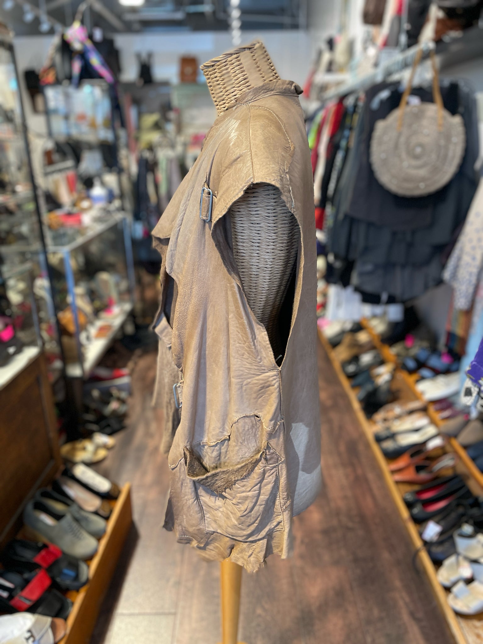 Swan Riedweg Brown Leather Distressed Vest, Size O/S