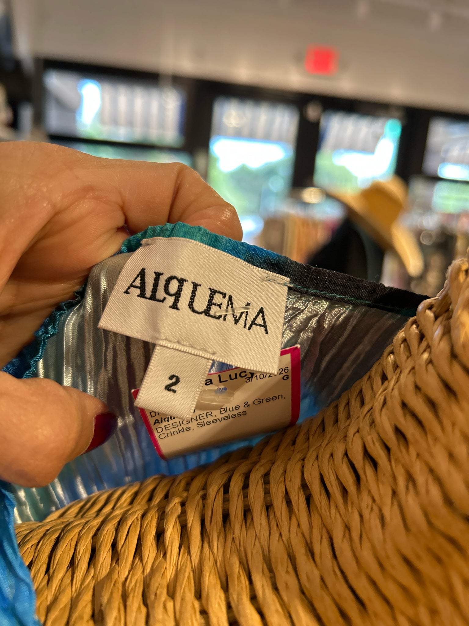 Alquema Blue & Green Crinkle Sleeveless Dress, Size 2=M