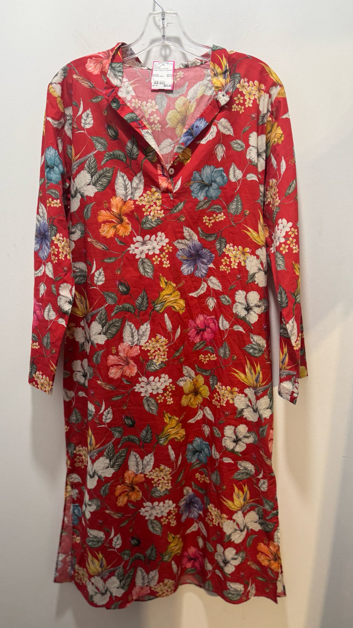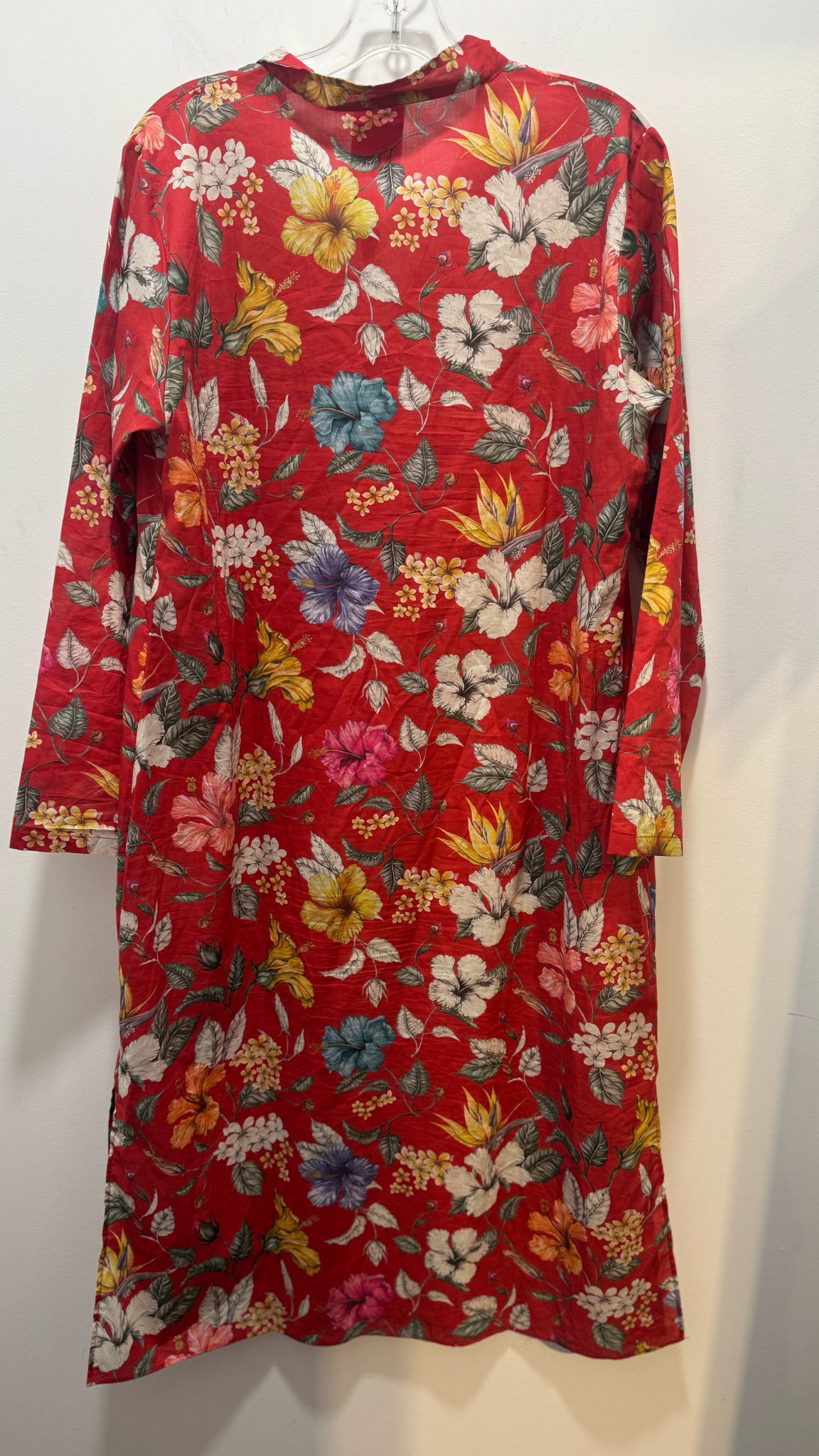 Frau Lau red multi Cotton tropical Long sleeve Dress, Size L