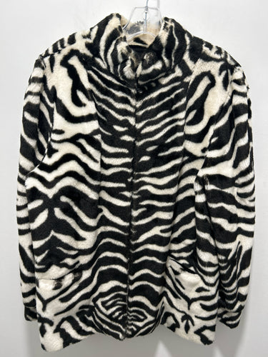 Lilli Ann Black & White acrylic & cotton Zebra Print w/zipper front Leather accent VINTAGE Coat, Size M/L