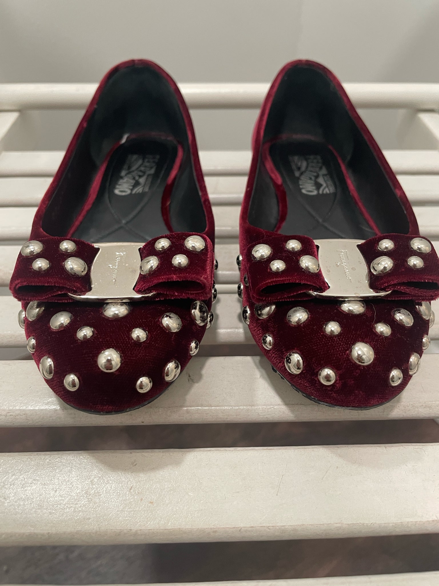 Ferragamo ruby red Velvet Size 6/7 Flat ballet core Shoe