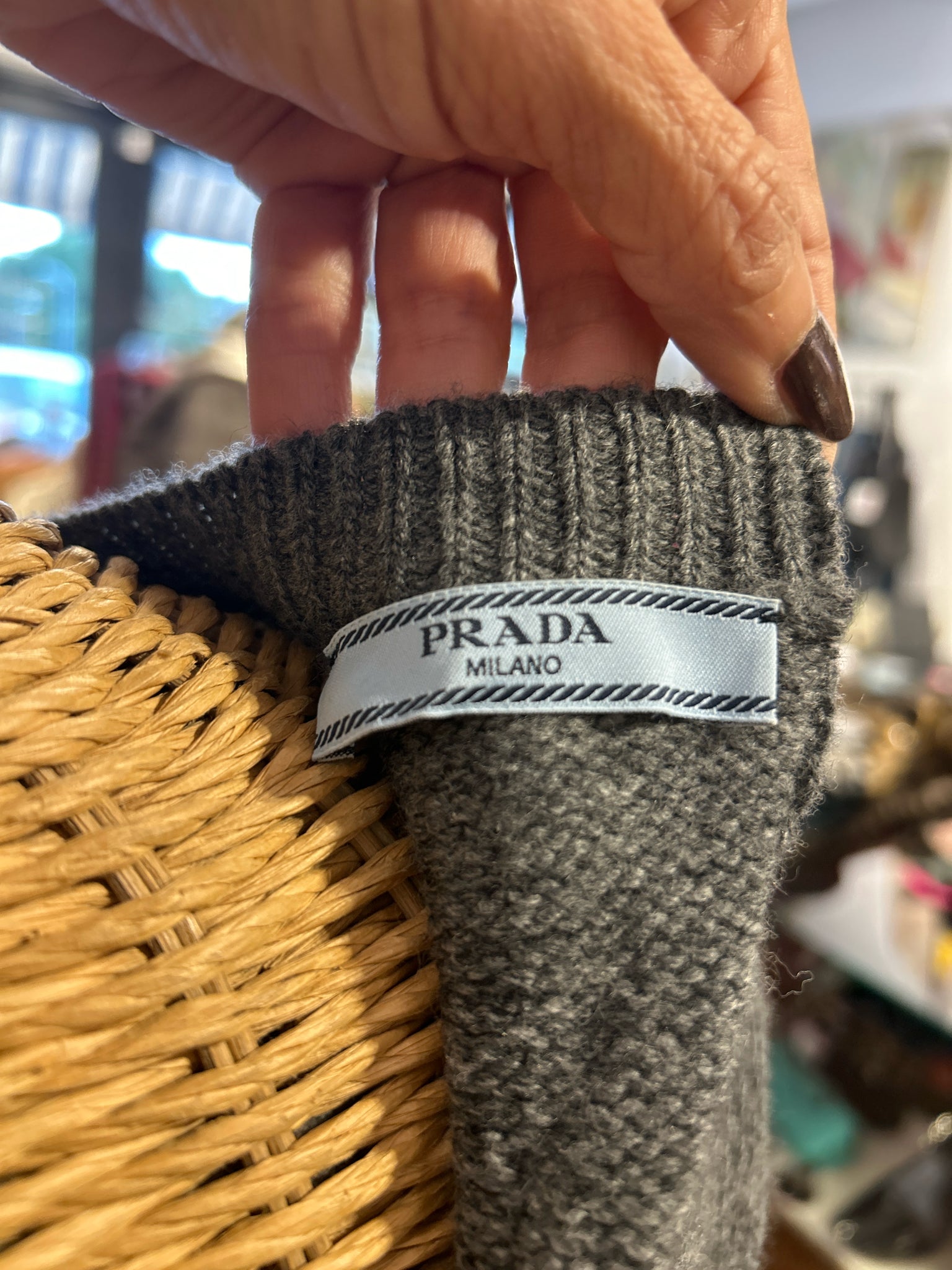 Prada Gray Cashmere Blend scalloped Snap Buttons back detail Sweater