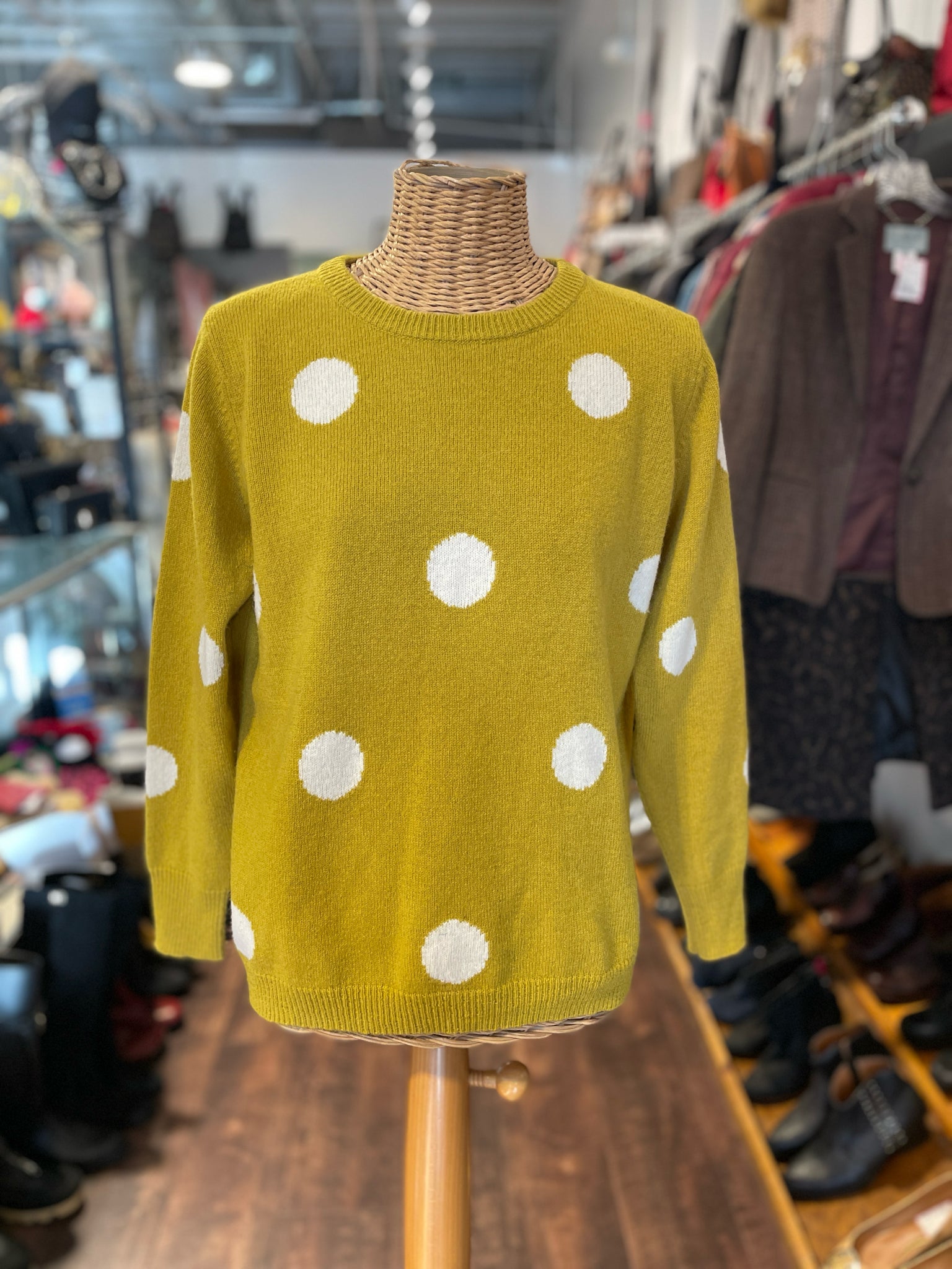 Two Danes mustard & cream Wool Polka Dot Long sleeve Sweater, Size S