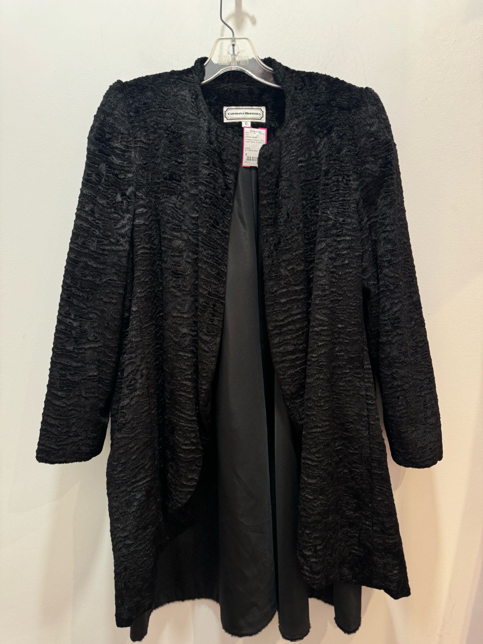 Carolina Herrera Black Cotton Blend Faux Shearling W/shoulder pads Vintage Coat, Size 6