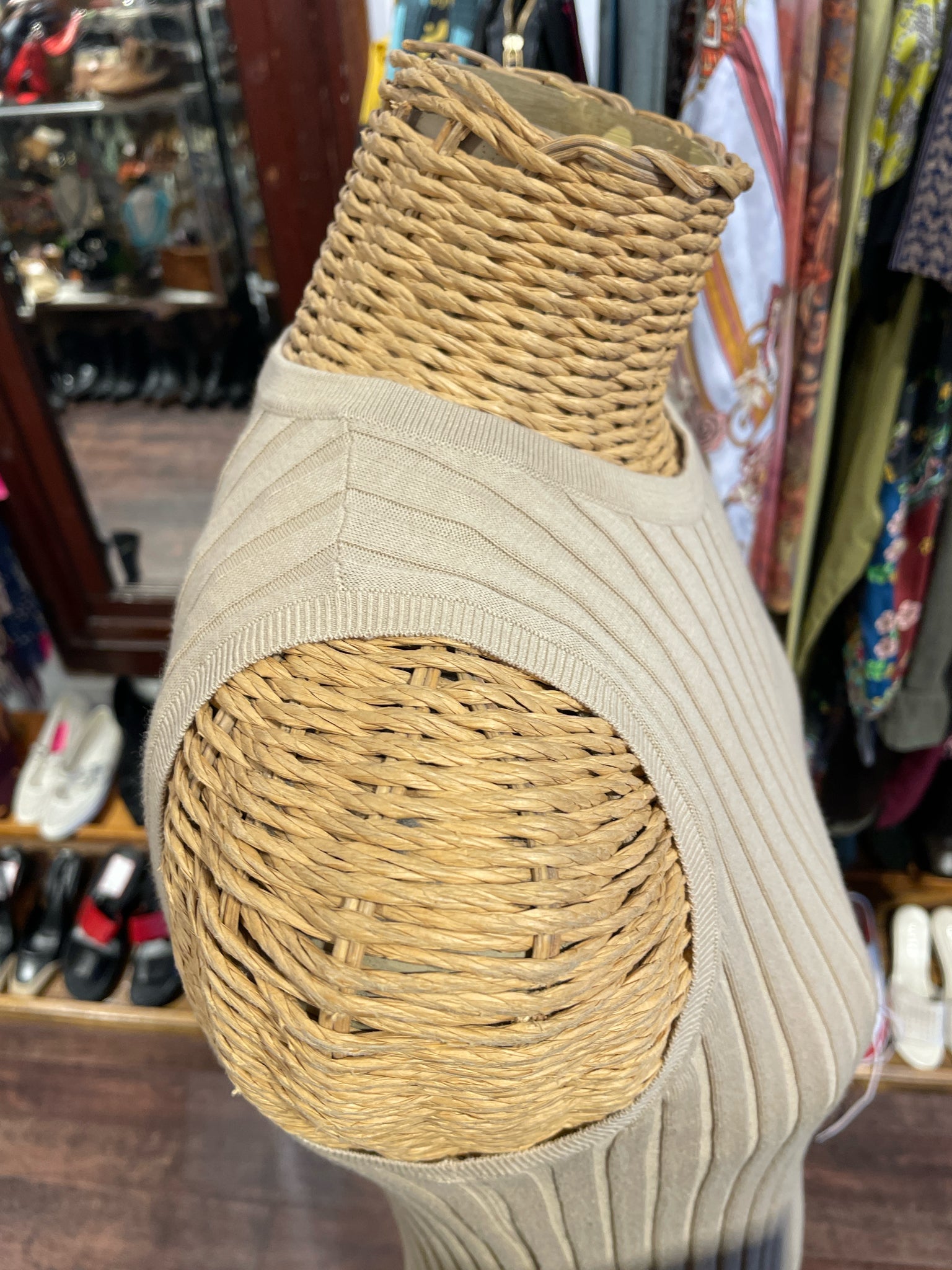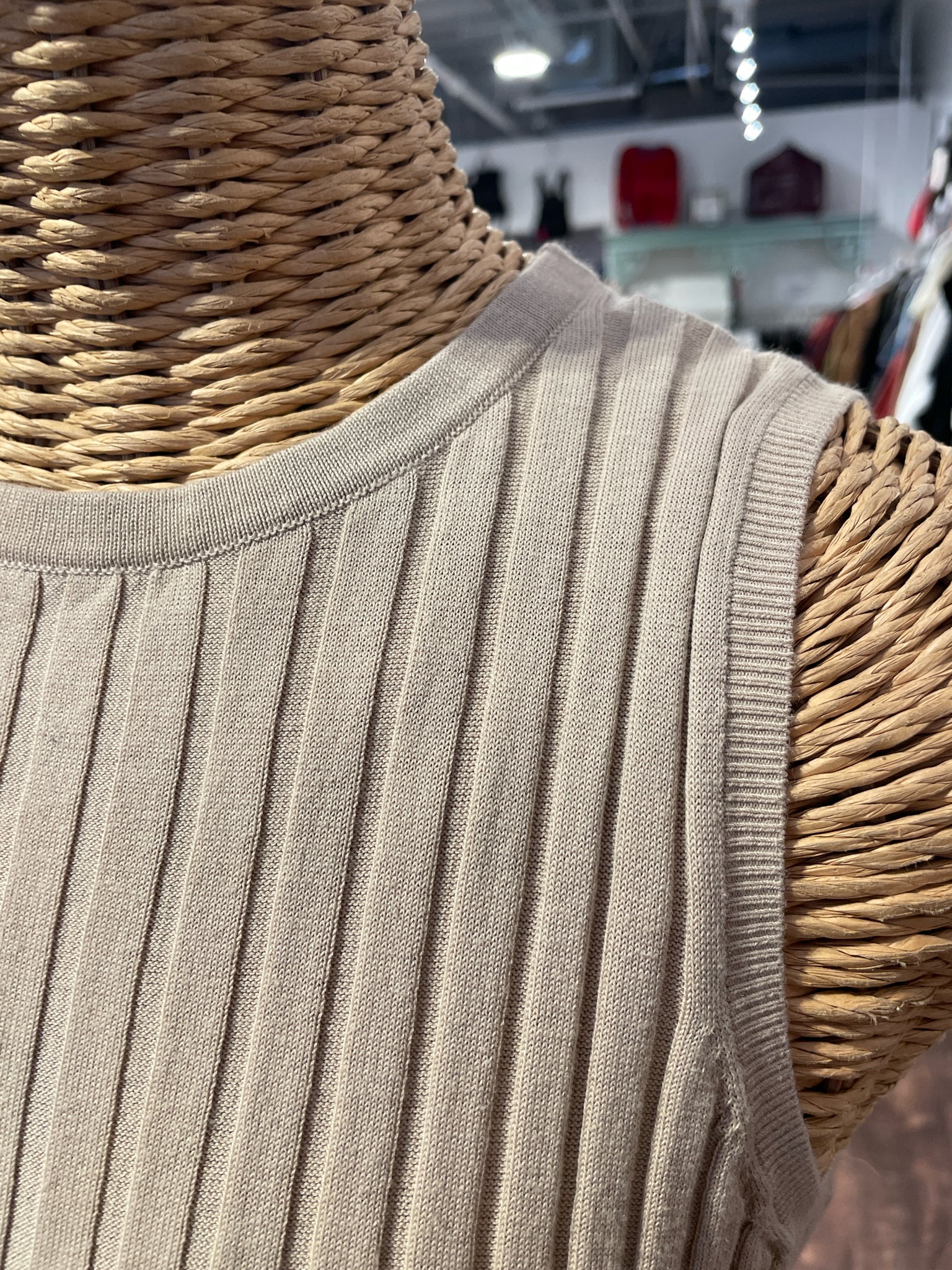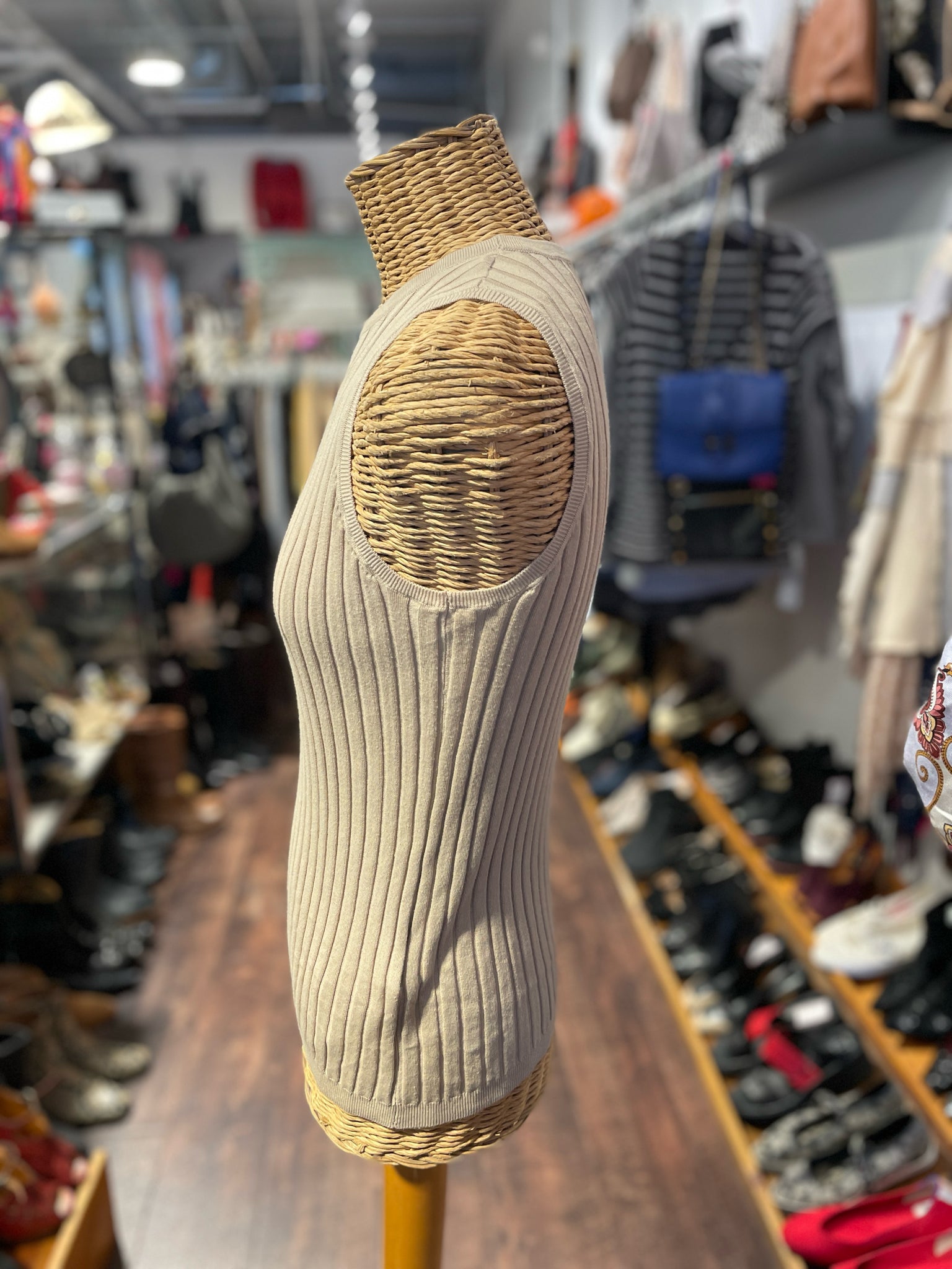 Allude Beige Cotton & Silk Ribbed Sleeveless Top