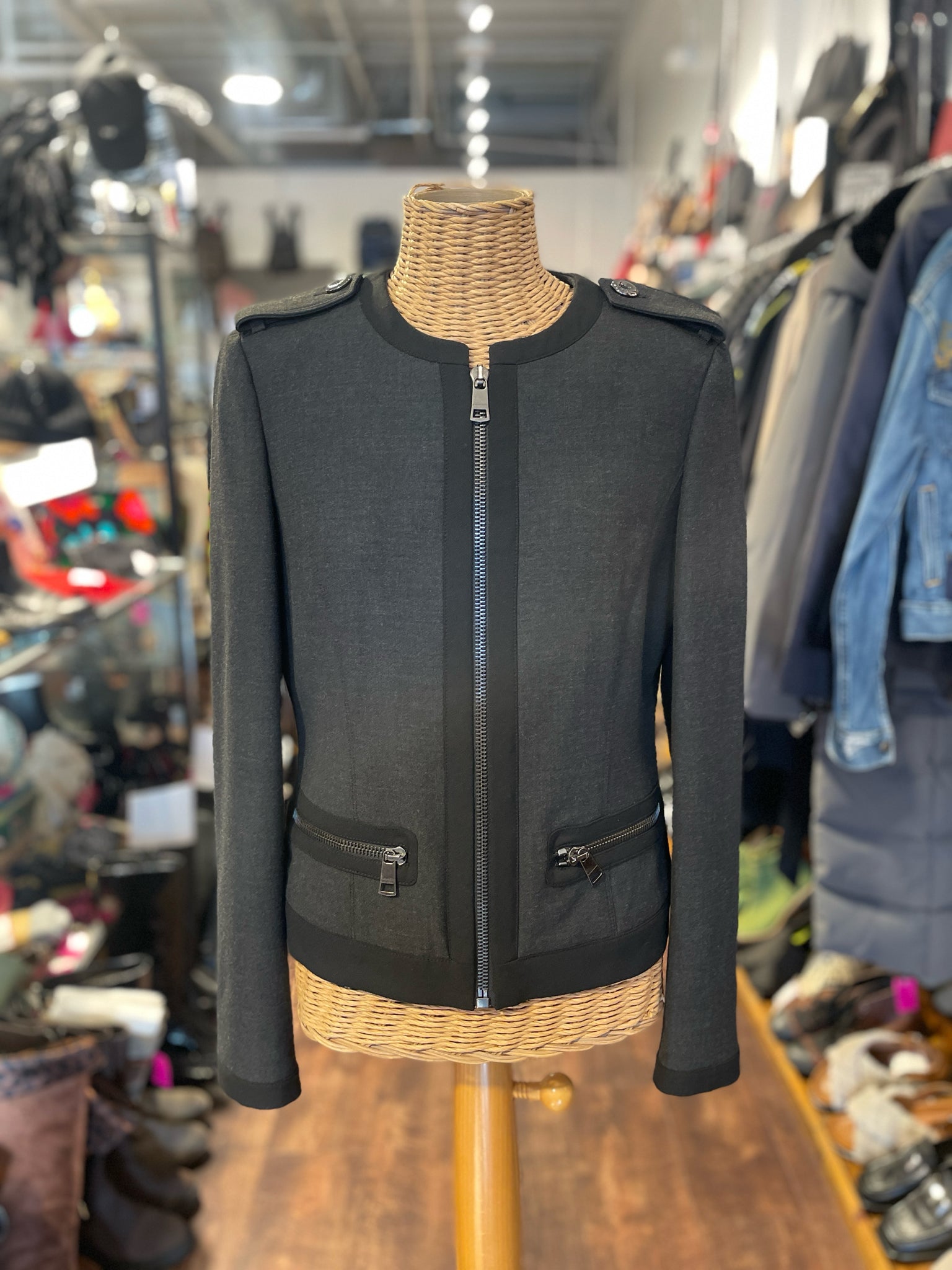 Burberry Slate Cotton Blend trim design zipper Jacket, Size 10