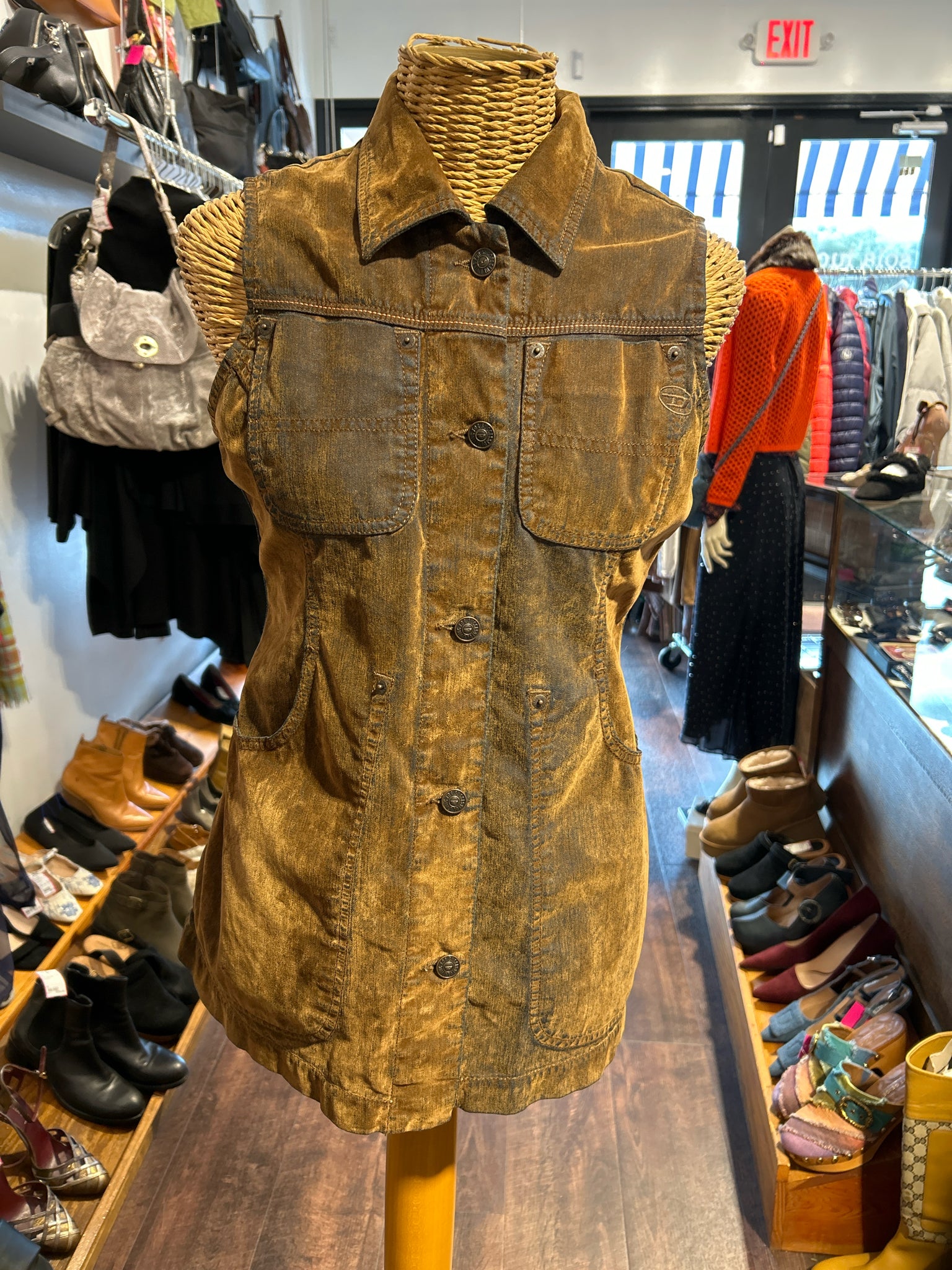 Diesel Brown Cotton Blend button down Vest, Gently worn, Size S