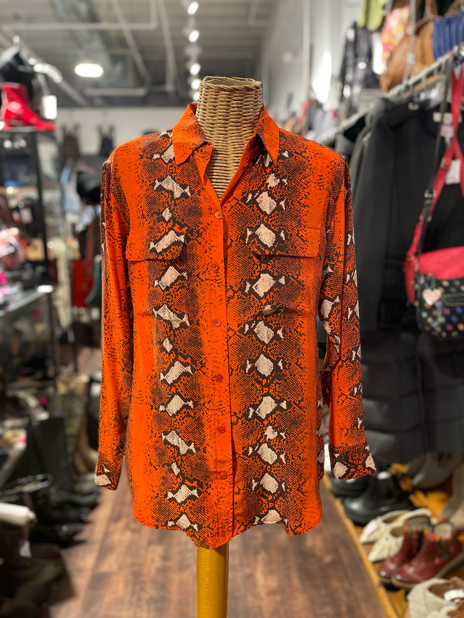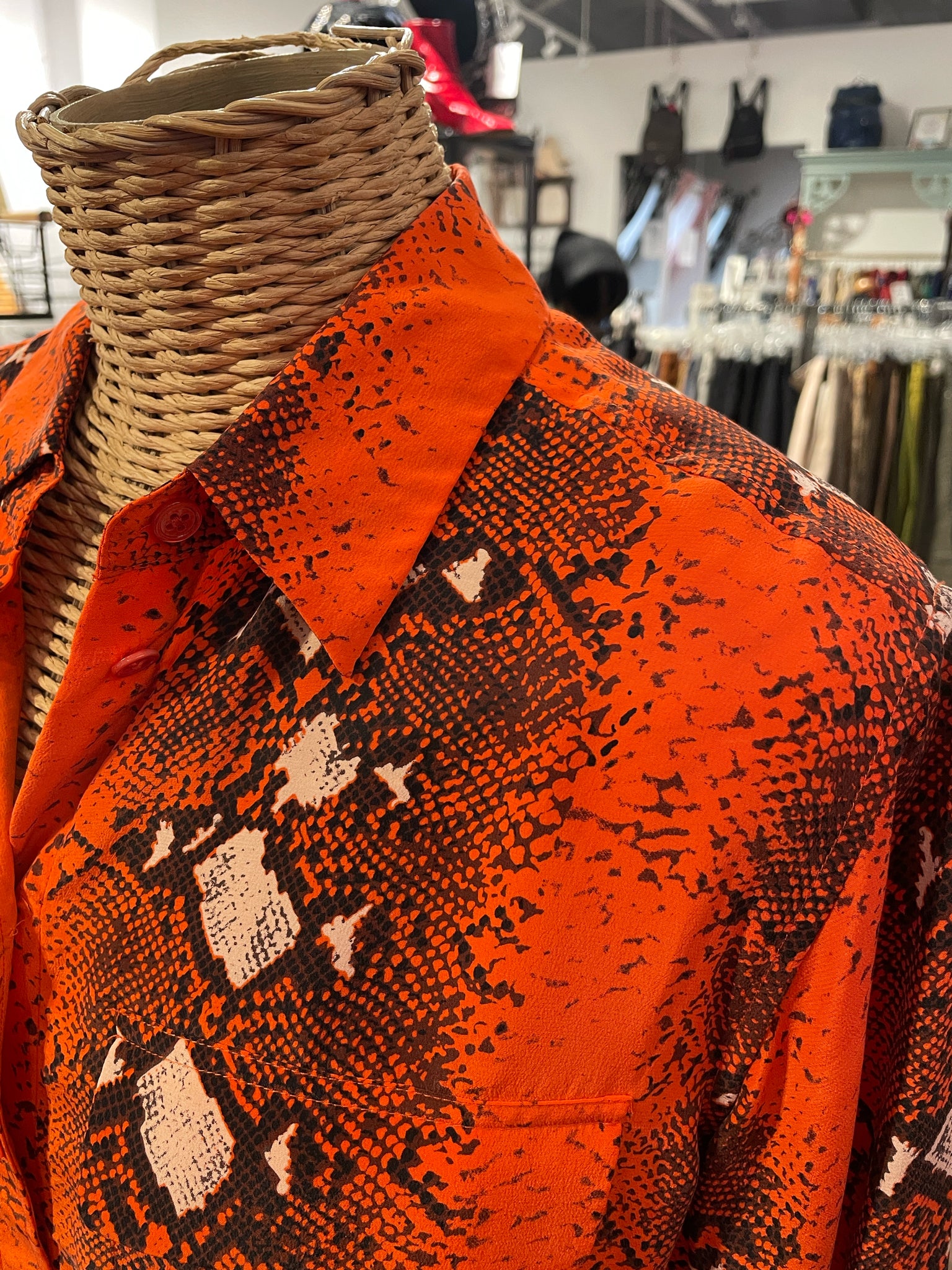 Equipment Orange & Black Silk Reptile Button up Top, Size XS