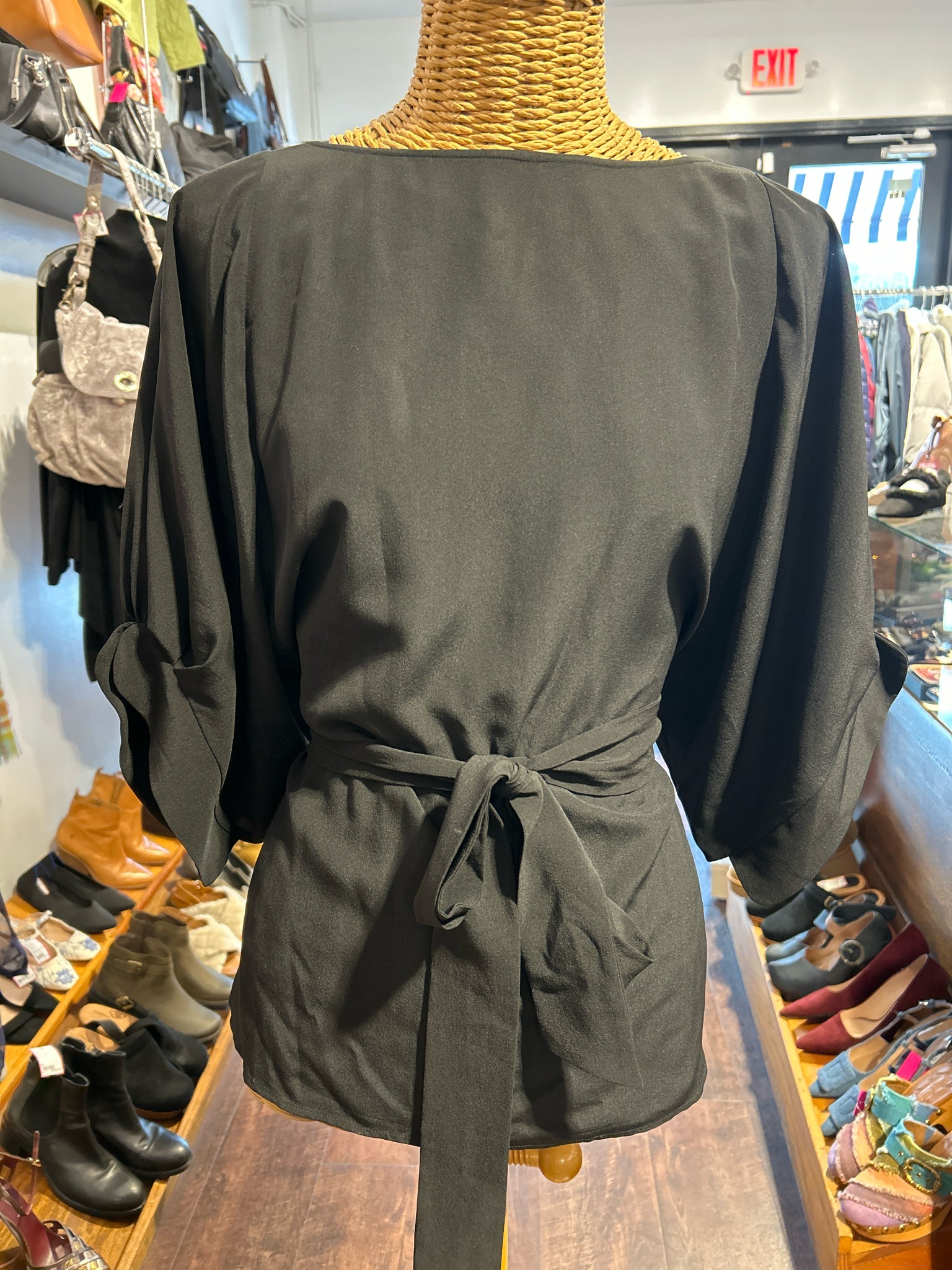 • Load image into Gallery viewer, ETRO Black Silk tie waist Top, Size 44