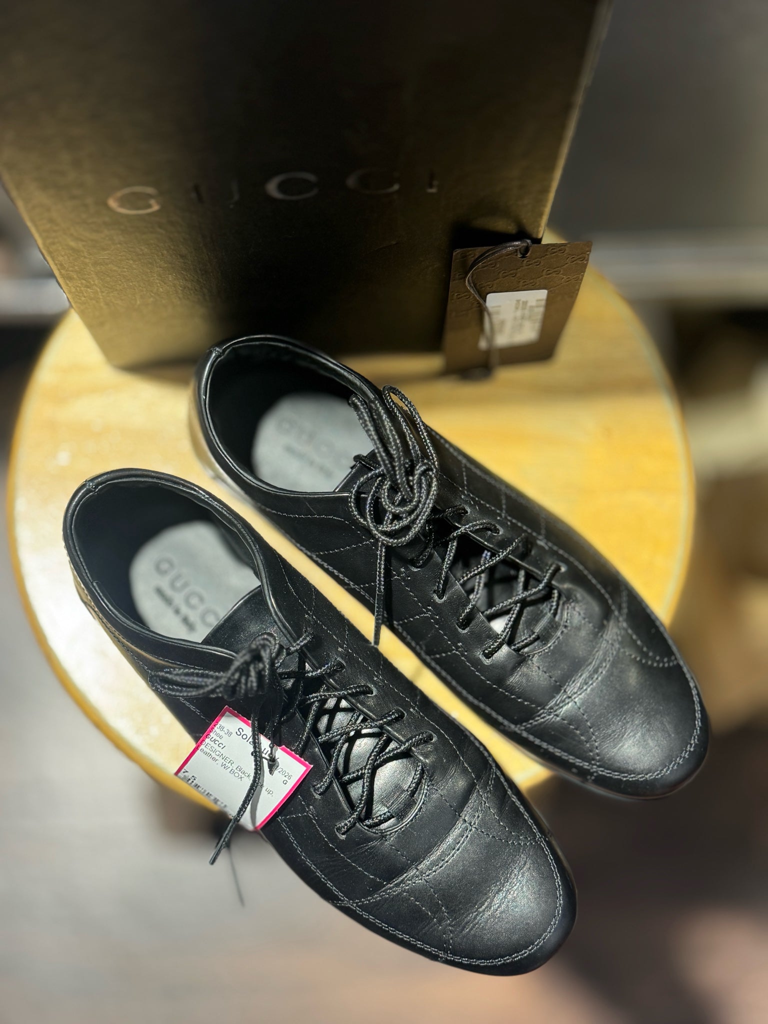 GUCCI Black Leather lace up Sneaker W/ BOX, Size 7.5
