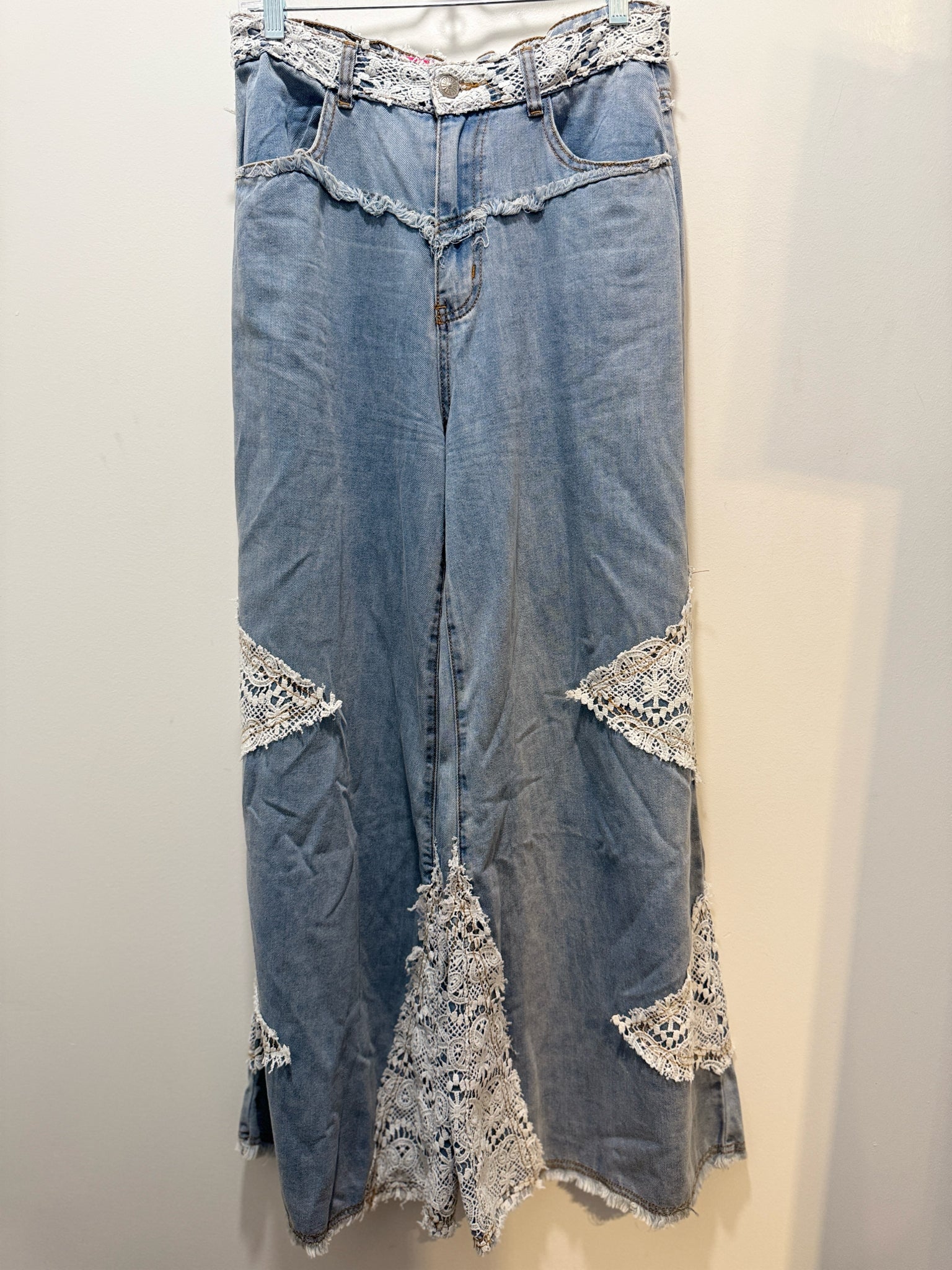 In My Element Light Wash Cotton lace Wide Leg Pant, Size M