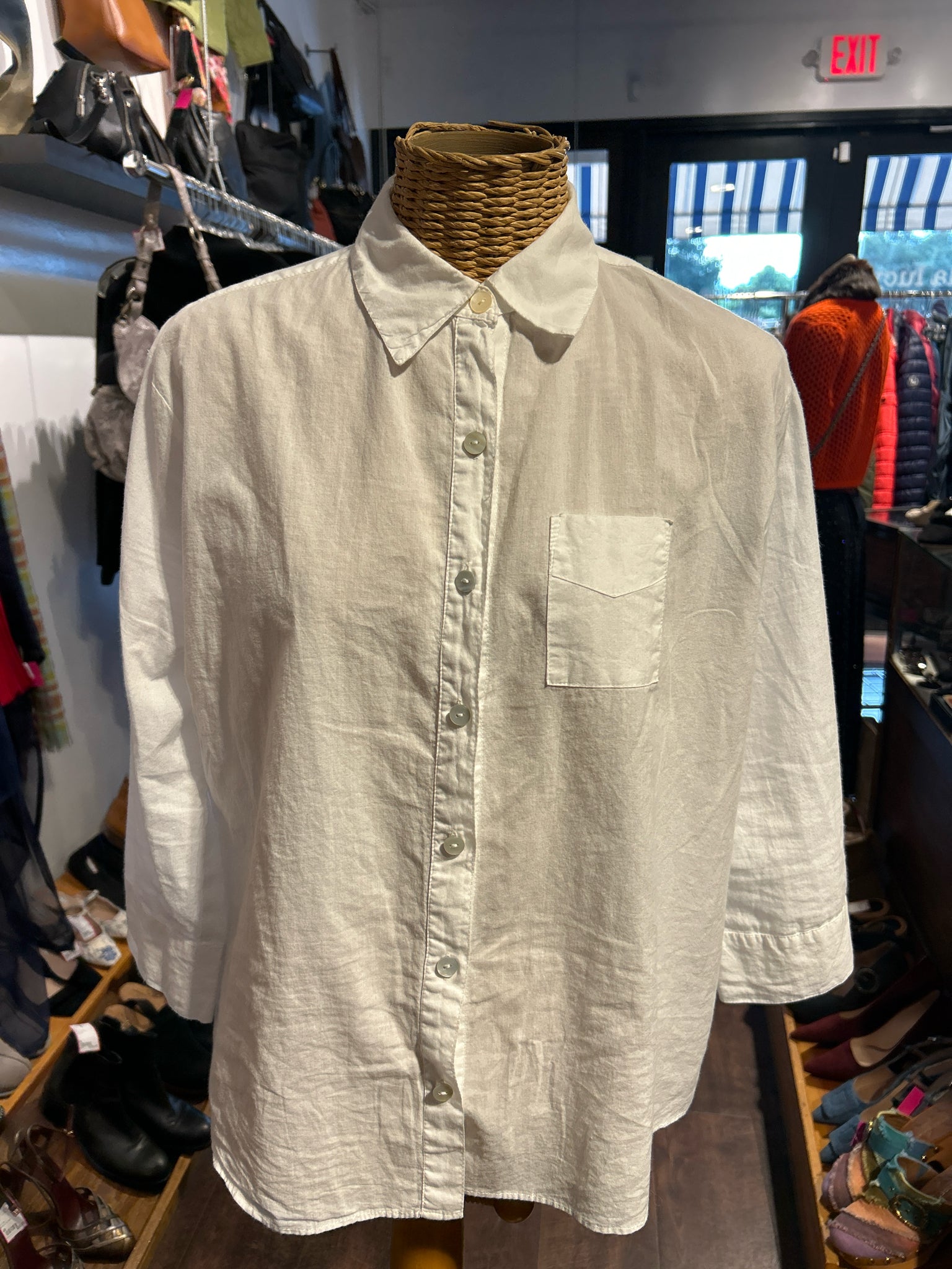 Jess Brown White Cotton Button up 3/4 length sleeve Top, Size 1=S
