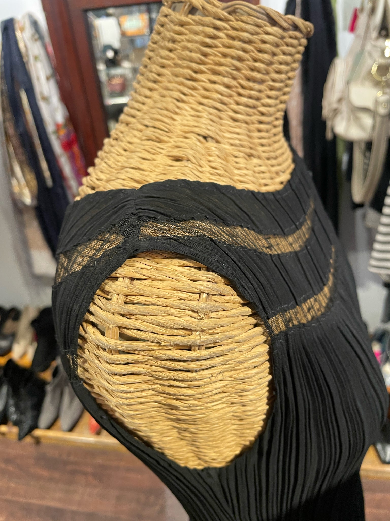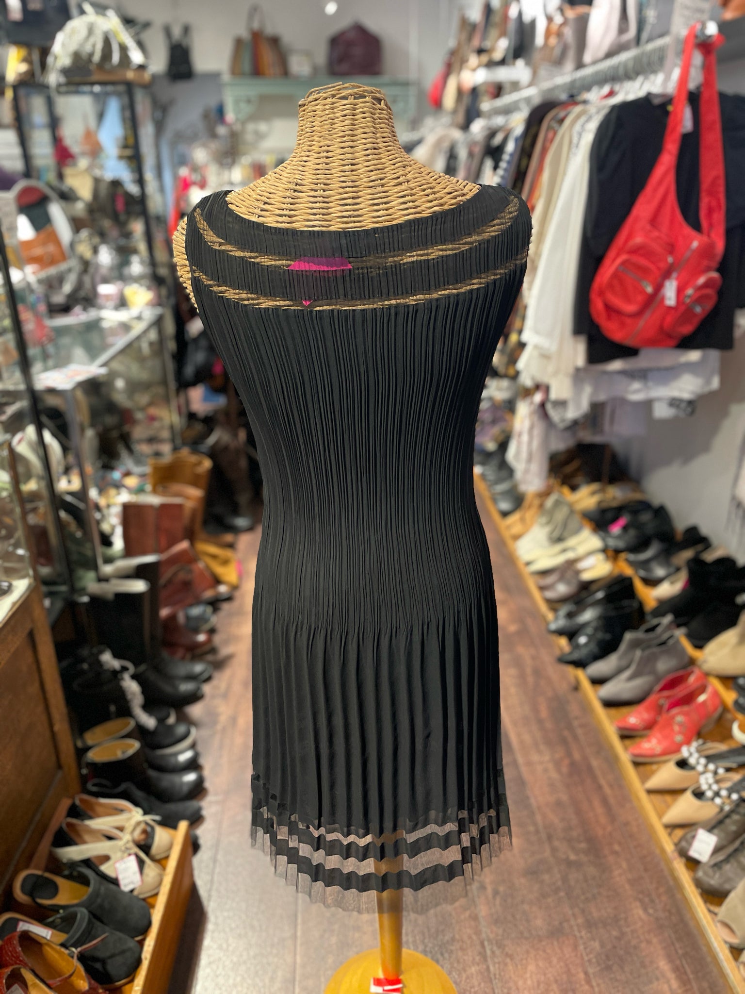 Veeca Black crinkle fabric sheer accents Dress, Size XS