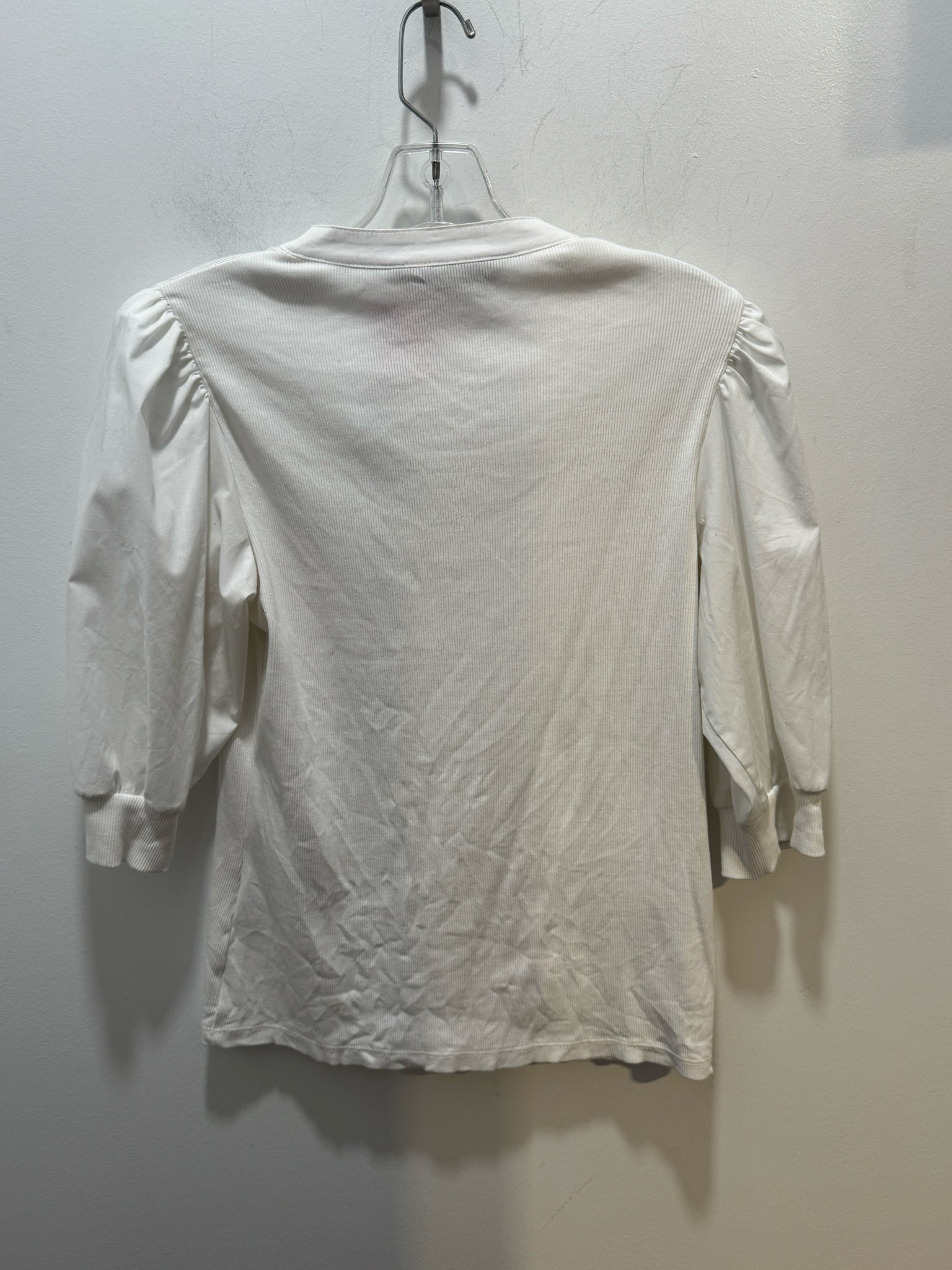 Veronica Beard White Cotton Blend rib accent half button Top, Gently Worn, Size S