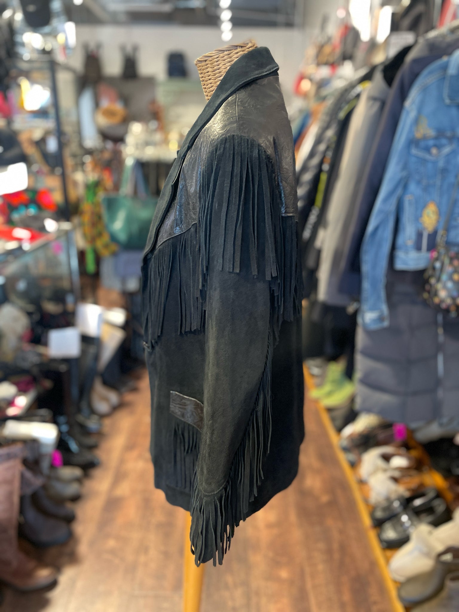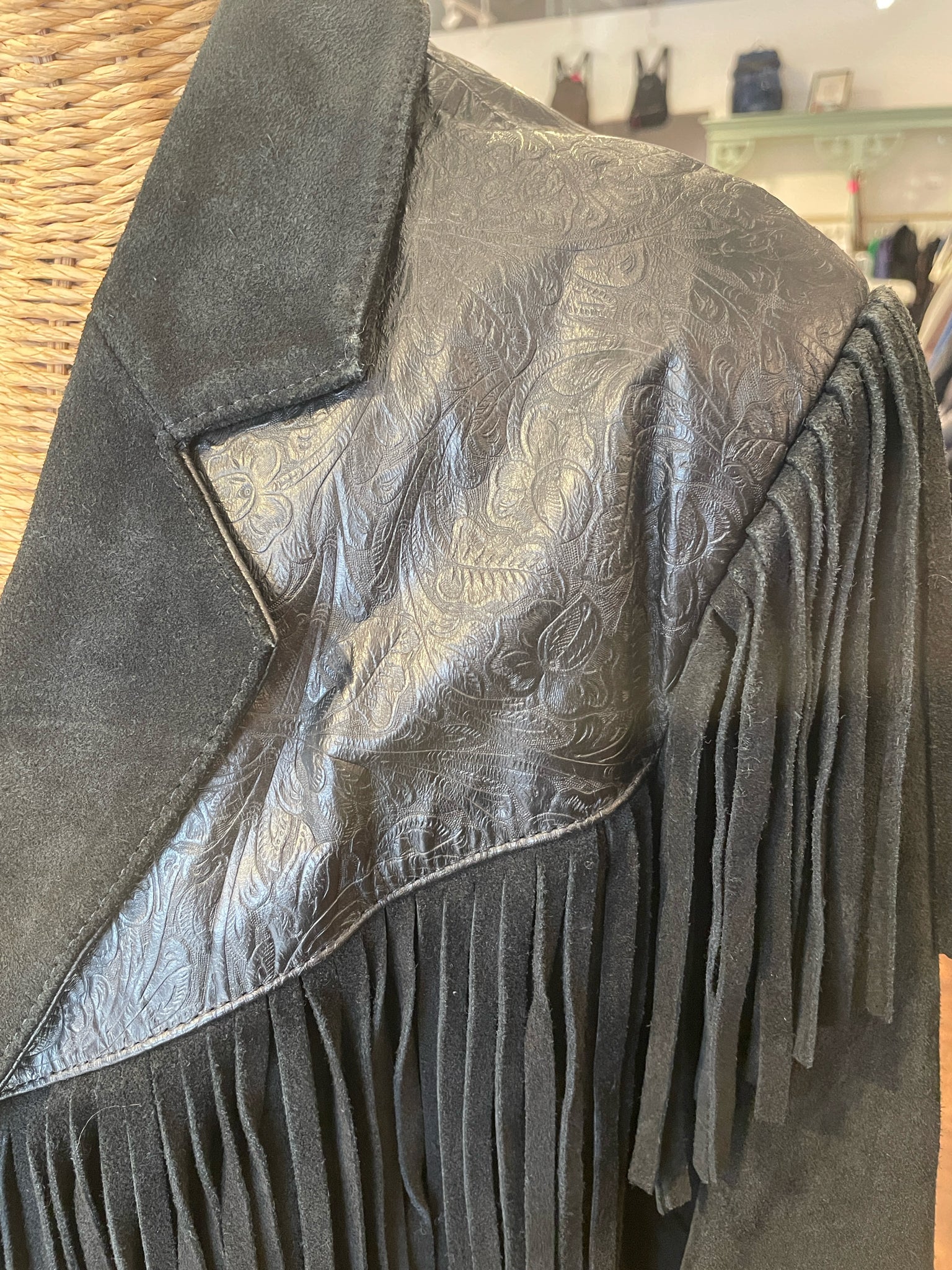 Wilsons Vintage Leather Black Suede & leather fringe Fringe Jacket