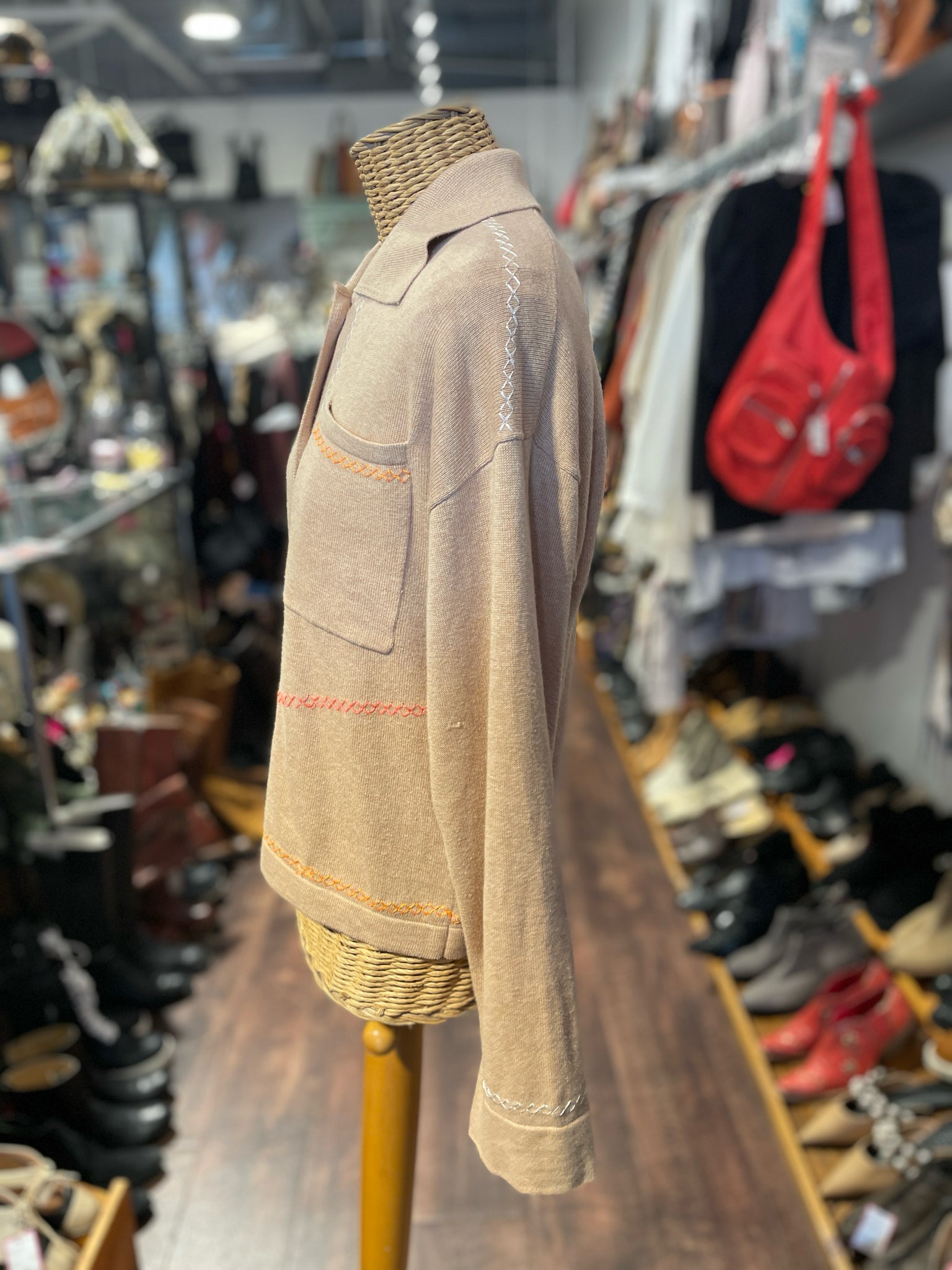 wispr Tan Cotton knit stitching Button Up Sweater, Size S